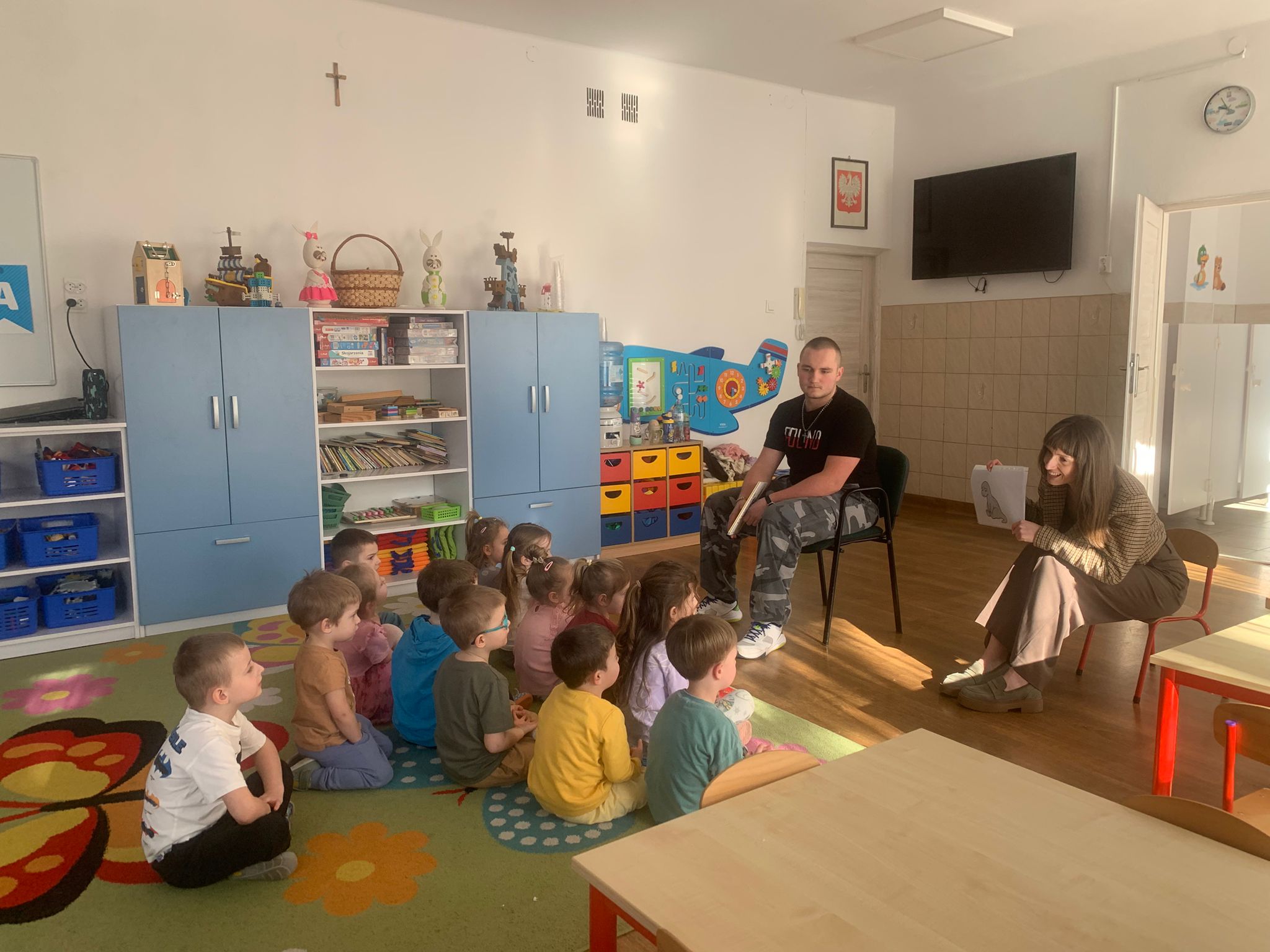 W minionym tygodniu uczeń naszej szkoły Kacper Kokoszka, kl. 2 TPE odwiedził dzieci z Przedszkola nr 6 w Nysie, aby przeczytać im bajkę „Tupturozaur”. Mali słuchacze z ogromnym zainteresowaniem śledzili przygody bohatera opowieści. Podczas zajęć dzieci miały możliwość poćwiczyć umiejętność formułowania miłych komunikatów. Wspólnie zastanawiały się, jak mówić do innych, aby sprawiać radość, a nie przykrość. Dowiedziały się, że słowa mają wielką moc – mogą wywoływać uśmiech i dobre samopoczucie, ale mogą też sprawić smutek. |