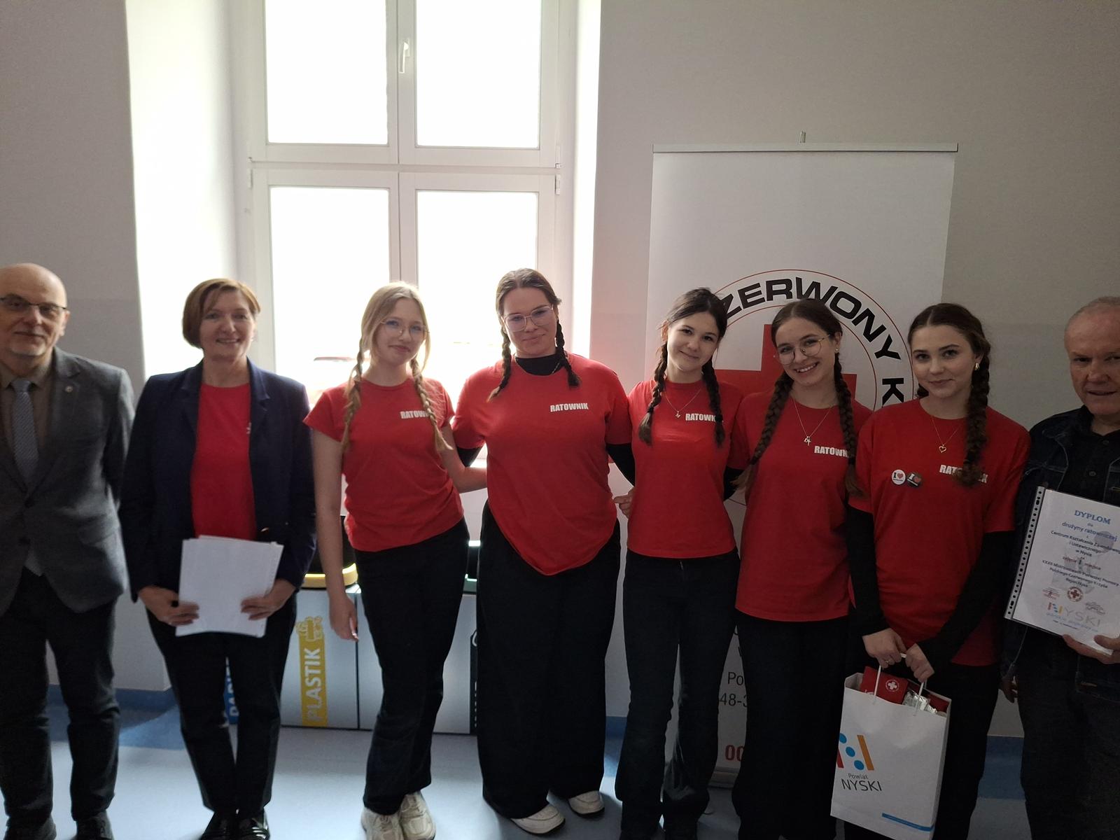 15 kwietnia w Collegium Medicum Państwowej Akademii Nauk Stosowanych w Nysie odbył się Etap Rejonowy Mistrzostw Pierwszej Pomocy PCK.. Centrum Kształcenia Zawodowego i Ustawicznego w Nysie reprezentowała drużyna w składzie: Każda drużyna miała do wykonania test z pierwszej pomocy oraz historii Międzynarodowego Ruchu Czerwonego Krzyża oraz zadania praktyczne na stacjach urazowych. |