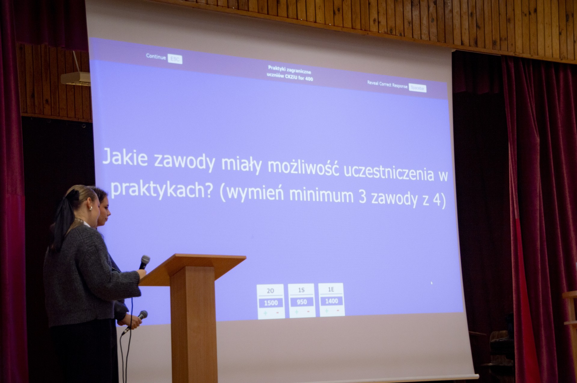 Międzynarodowy Dzień Języków Obcych, który odbył się w naszej szkole 1 października, był okazją do zapoznania uczniów z efektami przedsięwzięcia nr 2024-1-PL01-KA122-VET-000215474. "Międzynarodowa praktyka zawodowa furtką do lepszej przyszłości", w ramach projektu FRSE. Po wysłuchaniu informacji o realizowanym przedsięwzięciu, uczniowie mieli okazję zmierzenia się z pytaniami quizu i wygrania ciekawych nagród. Dzień ten też był świetną okazją do upowszechniania rezultatów tego przedsięwzięcia, a także zasięgnięcia informacji nt. projektów realizowanych z Funduszy Europejskich. |