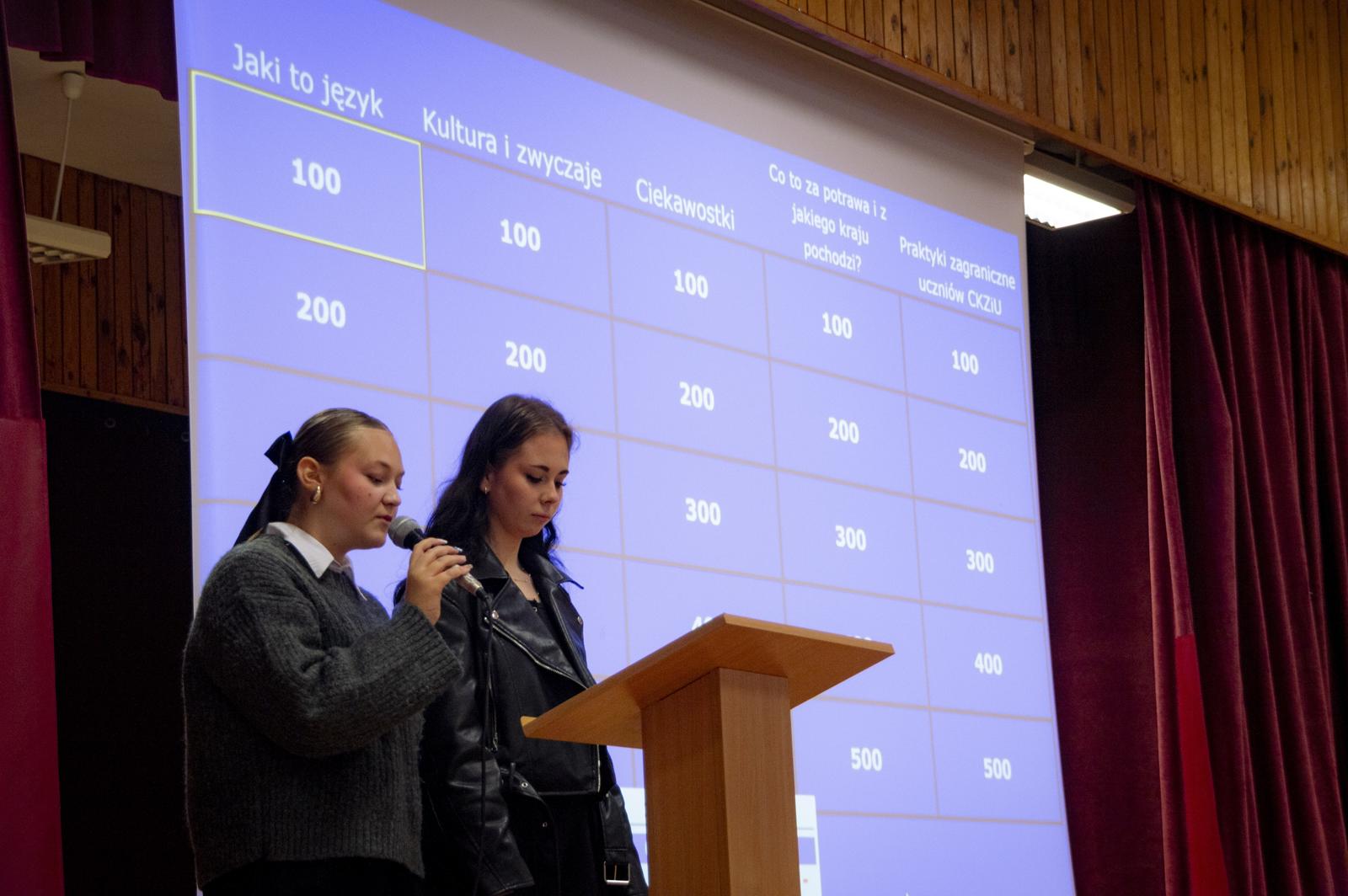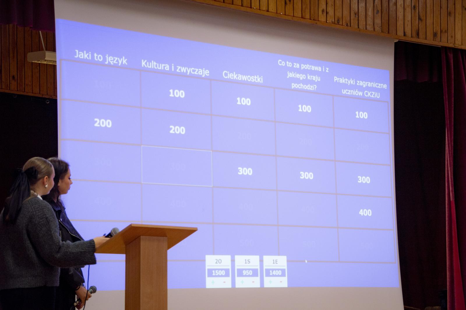 Ponadto reprezentacja każdej klasy w trakcie dnia brała udział w emocjonującym teleturnieju „Va banque”, w trakcie którego uczniowie odpowiadali na pytania dotyczące: rozpoznawania języka po jego brzmieniu, kultury i zwyczajów, ciekawostek, potraw i kraju ich pochodzenia, praktyk zagranicznych uczniów CKZiU oraz rozwiązywali zadania typu: zaśpiewaj piosenkę, przeczytaj łamaniec językowy. Zwyciężyły ex aequo 3 drużyny. Podczas wydarzenia młodzież świetnie się bawiła. Klasy kibicowały swoim ulubieńcom.