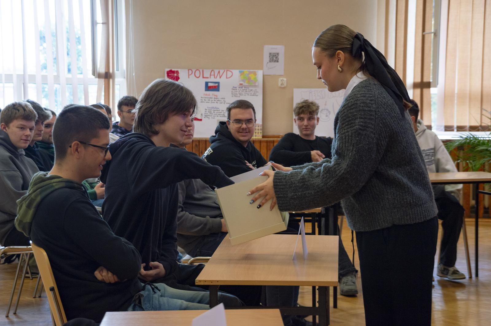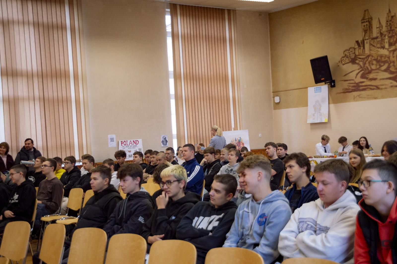 Szczególne zainteresowanie młodzieży oraz aktywne zaangażowanie w działania obserwowaliśmy przy stoiskach, gdzie można było porozmawiać z przedstawicielami krajów w charakterystycznych strojach, spróbować różnych potraw i napojów, obejrzeć ciekawe elementy graficzne, a nawet rozwiązać quiz. Zaprezentowano: Polskę, Niemcy, Czechy, Grecję, Francję, Włochy, Wielką Brytanię oraz Szwecję. W głosowaniu, przeważającą większością głosów wygrały nasze barwy narodowe, czyli drużyna polska.