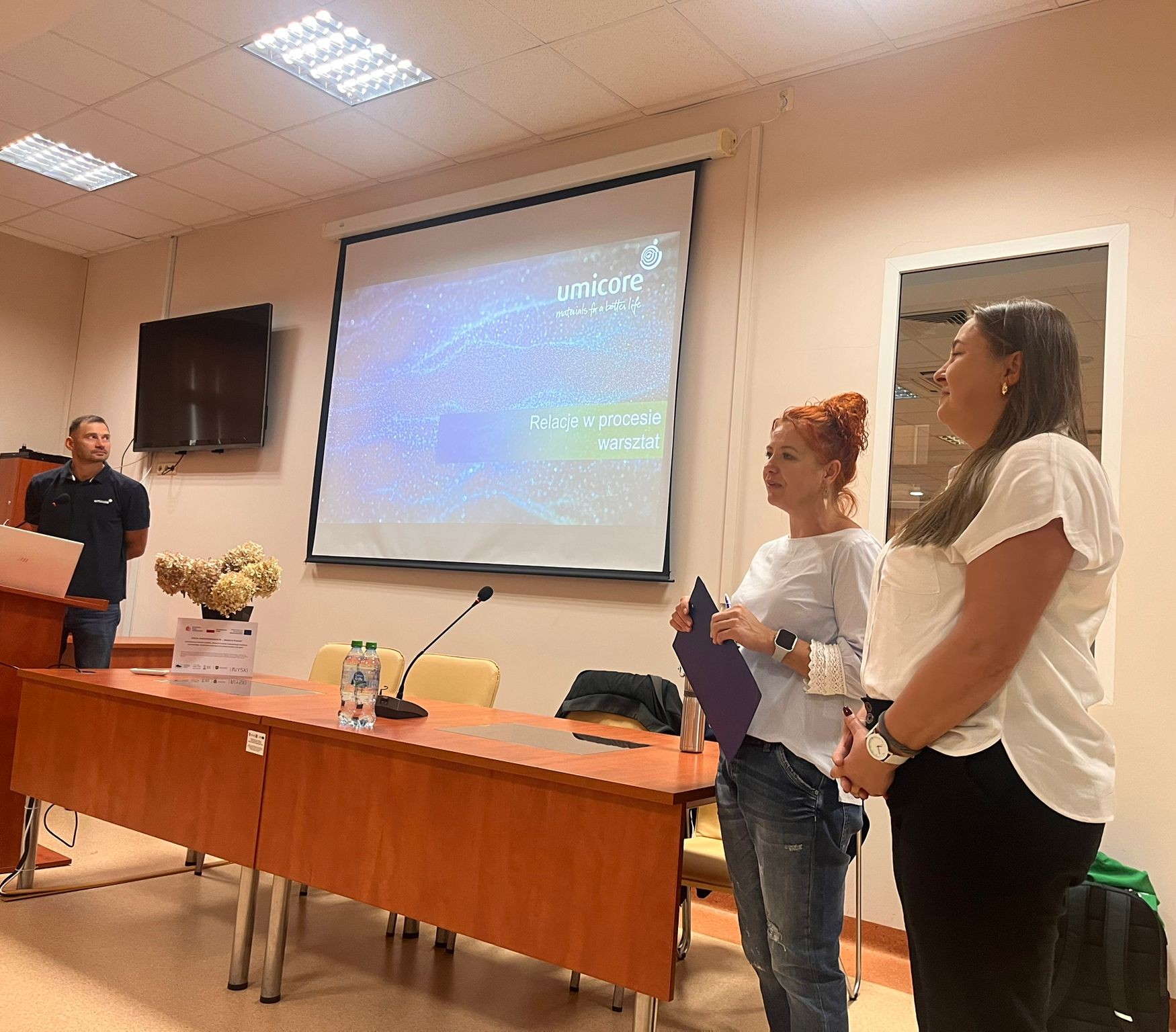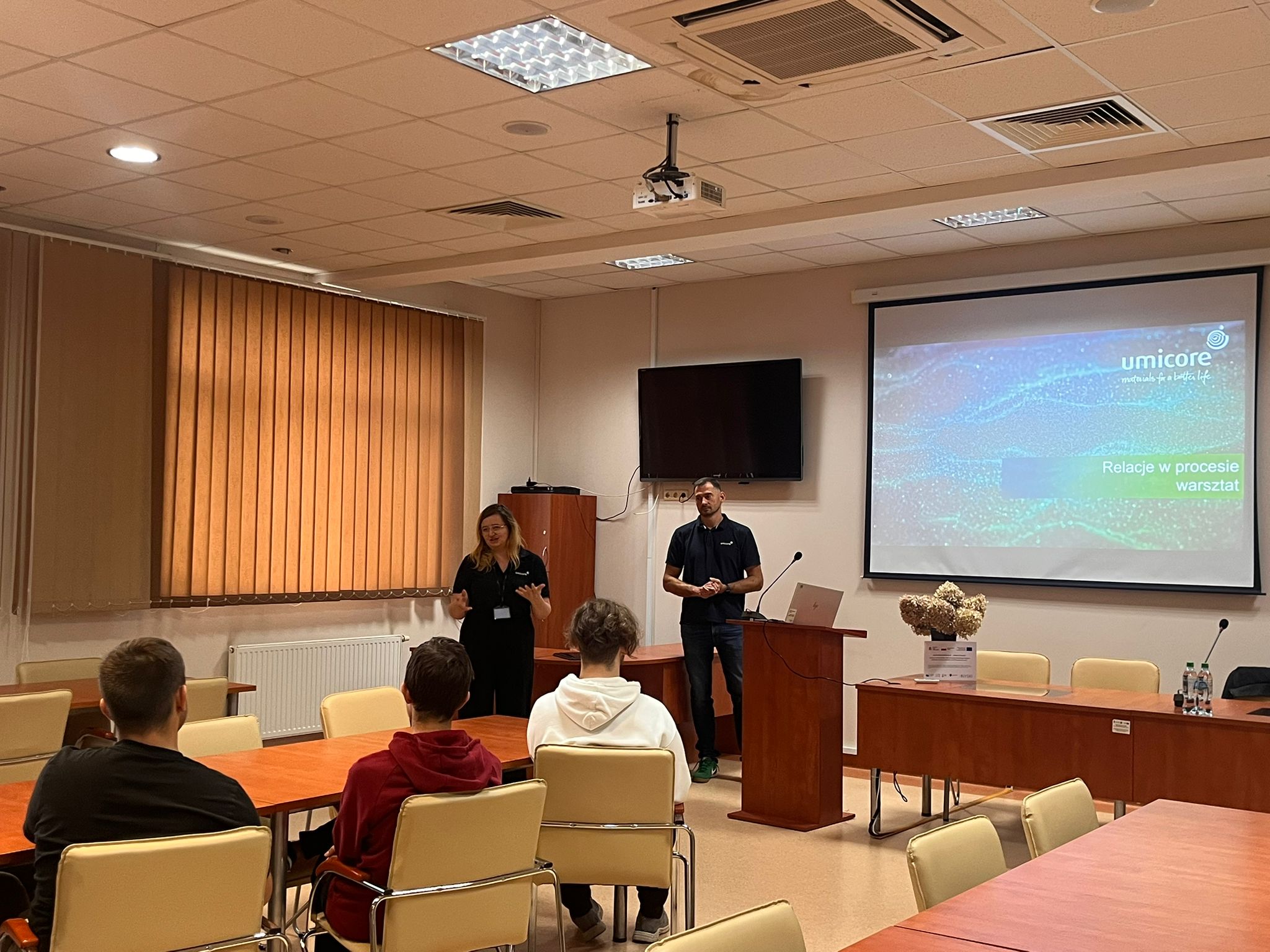 W dniu 24.10.2025 obyły się zajęcia warsztatowe pn. „Relacje w procesie”. Uczniowie kształcący się w zawodzie technik mechatronik mieli okazję zapoznać się z działalnością produkcyjną firmy Umicore i rozwiązać problemy związane z etapem tworzenia nowych technologii dla elektromobilności. Spotkanie odbyło się z inicjatywy PUP Nysa i szkolnego doradcy zawodowego CKZiU Nysa |