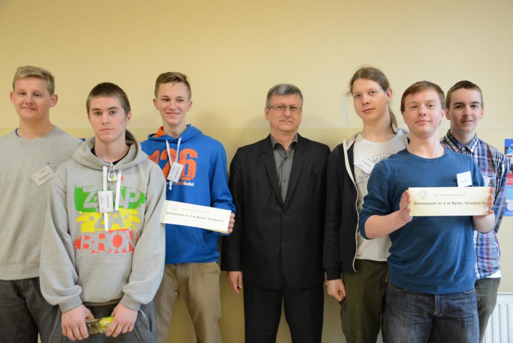 Opiekunem drużyny był Pan Arkadiusz Liburski Drugie i trzecie miejsce zajęli uczniowie z Gimnazjum nr 2 im. Karpatczyków w Nysie w składach: Miejsce 2: