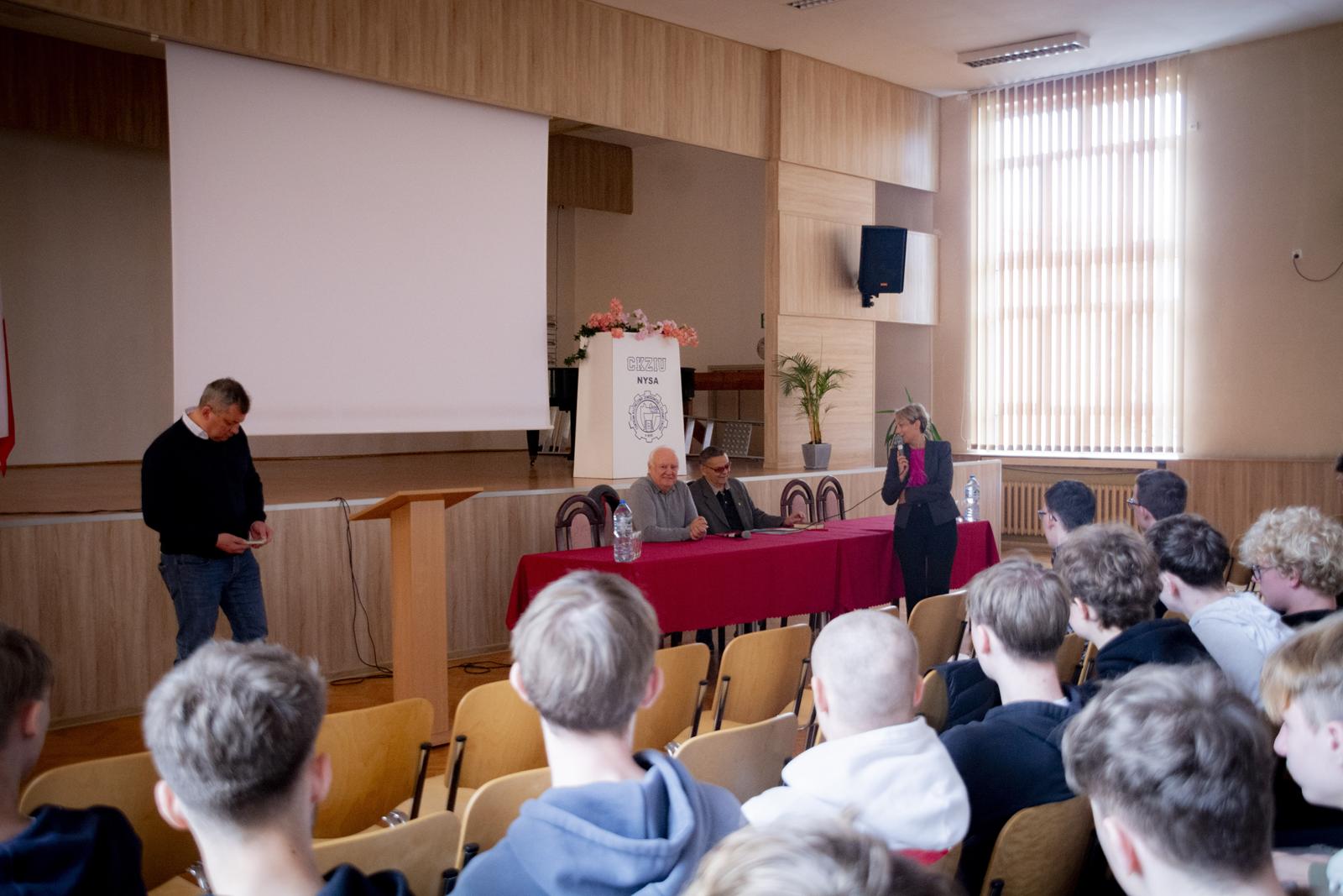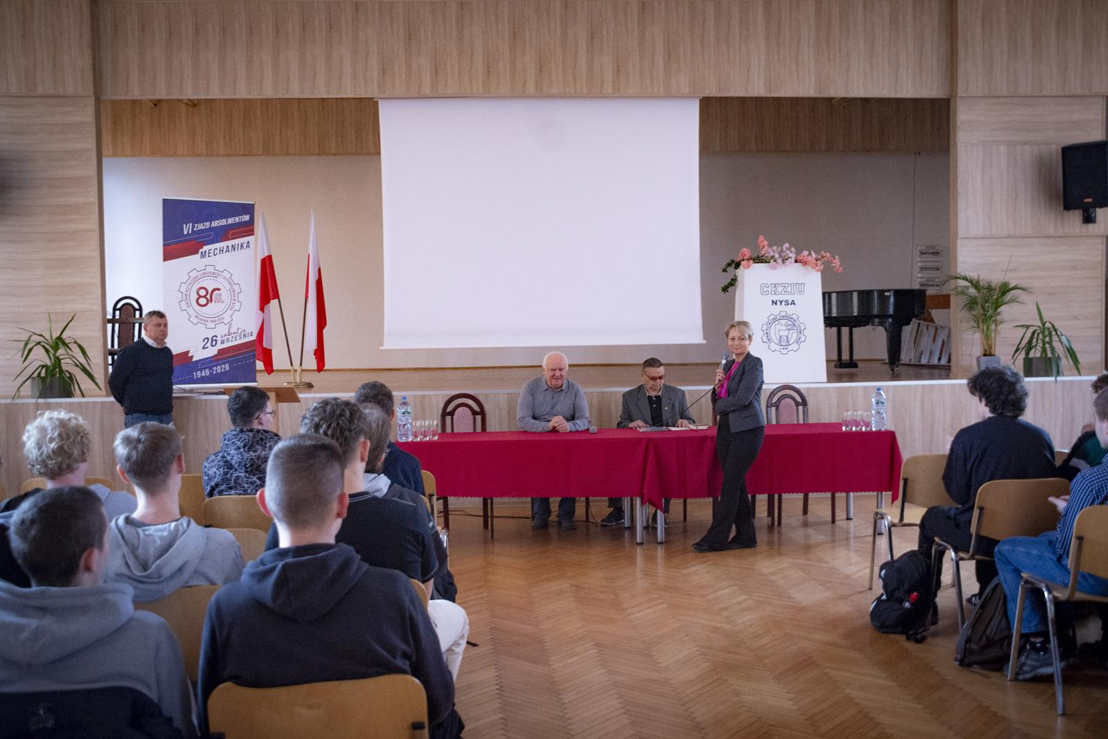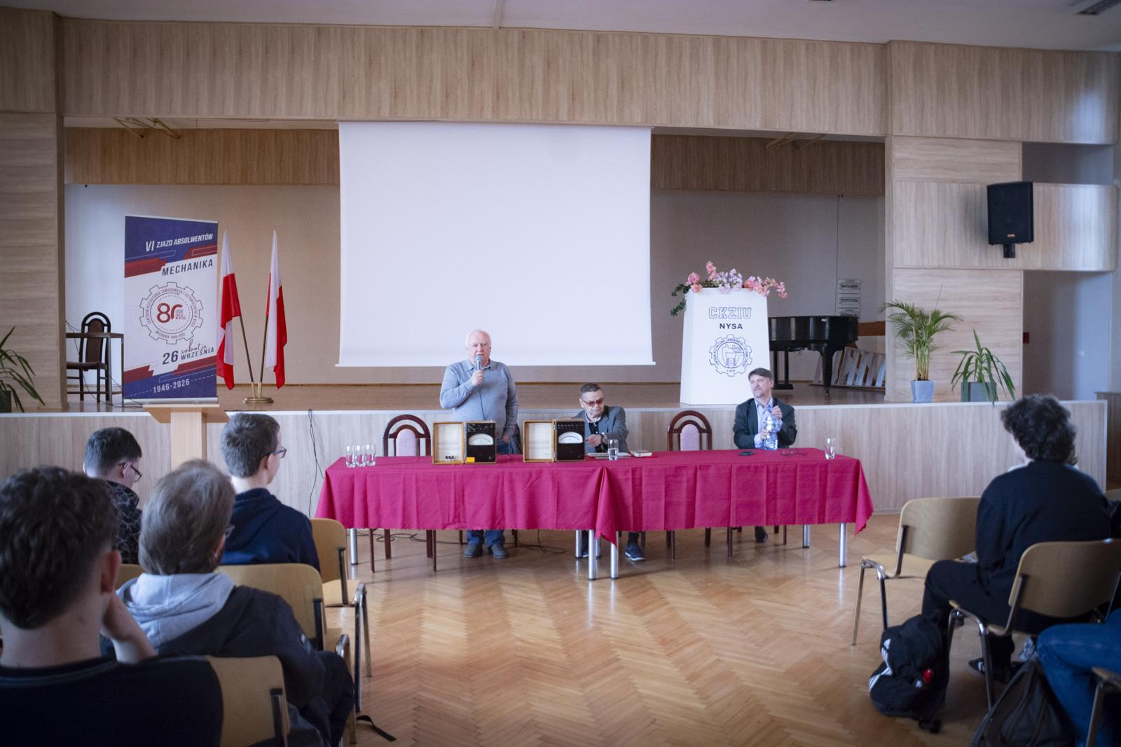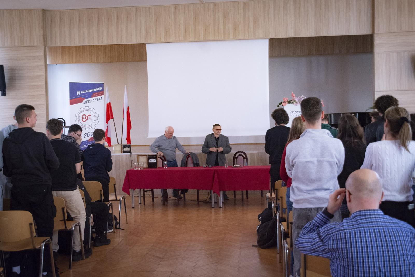 Spotkanie zrealizowano w ramach wydarzeń związanych ze zbliżającymi się obchodami 80-lecia szkoły. Uczniowie technikum ciepło przywitali obu szacownych gości i z zainteresowaniem wysłuchali relacji i wspomnień związanych z ich nauką, pasjami i wieloletnią pracą w „Mechaniku”. W trakcie spotkania była okazja do obejrzenia prezentacji złożonej z kronikarskich zdjęć o historii naszej szkoły, ludziach, którzy ją tworzyli, byli i są jej częścią.
