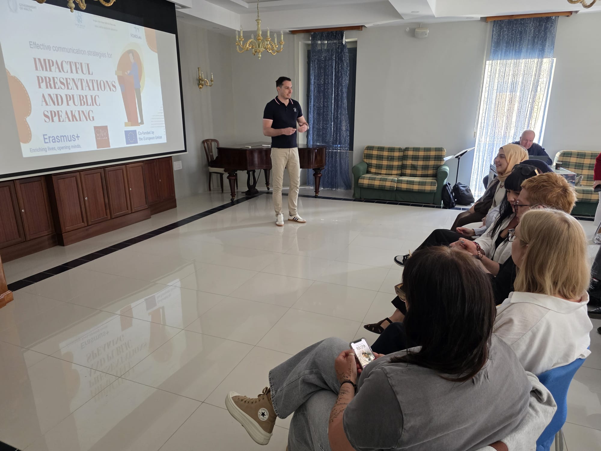 Szkolenie miało charakter intensywnego, pięciodniowego kursu, którego głównym celem było rozwijanie nowoczesnych metod nauczania oraz podnoszenie kompetencji cyfrowych nauczycieli. W wydarzeniu uczestniczyli edukatorzy z różnych krajów Europy, co stworzyło doskonałą przestrzeń do wymiany doświadczeń, dobrych praktyk oraz budowania międzynarodowych relacji. Program szkolenia obejmował szeroki zakres zagadnień związanych z nowoczesną edukacją. Uczestnicy mieli okazję zapoznać się m.in. z metodami gamifikacji w nauczaniu, technikami storytellingu (w tym cyfrowego), wykorzystaniem urządzeń mobilnych w edukacji, kodami QR, grami symulacyjnymi oraz platformami e-learningowymi, takimi jak Moodle. Zajęcia prowadzone były w formie warsztatów, prezentacji oraz interaktywnych sesji, które sprzyjały aktywnemu zaangażowaniu wszystkich uczestników. Każdy dzień szkoleniowy poświęcony był innemu zagadnieniu. Uczestnicy zgłębiali m.in. zasady tworzenia angażujących materiałów dydaktycznych, skutecznej komunikacji i wystąpień publicznych, a także sposoby budowania motywacji uczniów poprzez nowoczesne narzędzia cyfrowe. Szczególny nacisk położono na praktyczne zastosowanie zdobytej wiedzy w codziennej pracy dydaktycznej.