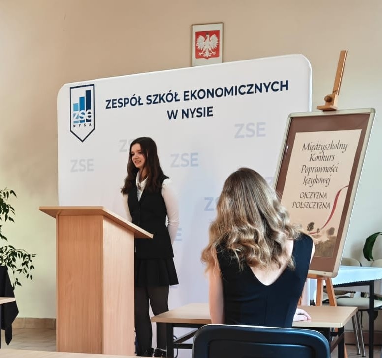 W Zespole Szkół Ekonomicznych w Nysie 27.02.2026r. odbył się III Międzyszkolny Konkurs Poprawności Językowej „OJCZYZNA – POLSZCZYZNA”. Jego celem jest rozwijanie i propagowanie poprawności języka polskiego. W konkursie uczestniczyli uczniowie ze szkół powiatu nyskiego. Miło nam poinformować, że nasza uczennica, Julia Tokarczyk z kl.ITG, zaprezentowała się doskonale i otrzymała wyróżnienie. Julii serdecznie gratulujemy i życzymy dalszych sukcesów. Uczennica przygotowywała się do swojego wystąpienia pod kierunkiem Pani Beaty Pelc. |