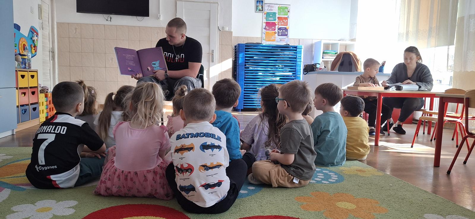 W minionym tygodniu uczeń naszej szkoły Kacper Kokoszka, kl. 2 TPE odwiedził dzieci z Przedszkola nr 6 w Nysie, aby przeczytać im bajkę „Tupturozaur”. Mali słuchacze z ogromnym zainteresowaniem śledzili przygody bohatera opowieści.